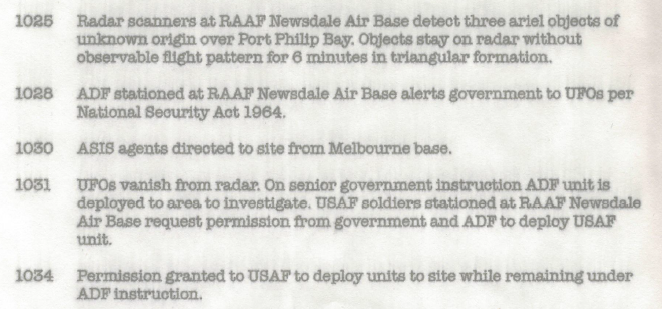 Frequently mentioned is alleged radar information RAAF and the ADF were privy to that would explain the speed at which soldiers arrived to the school, with the possible implication the UFOs left just before the military presence arrived (this is speculation on my part). The radar information does correspond to the UFO movements as we understand them, with an apparent earlier detection of all three saucers nearly half an hour before the Brightview sighting.